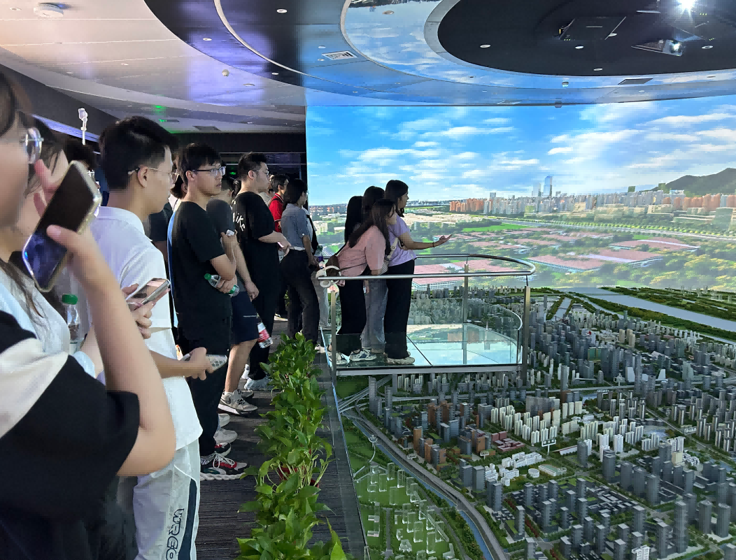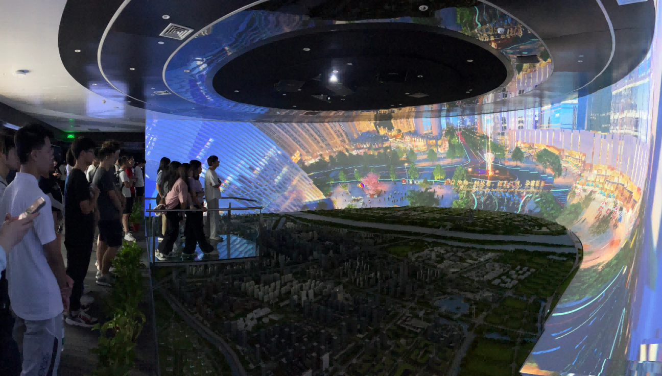 园区内现代建筑群错落有致,每一砖一瓦都蕴含着创新和科技的基因。尊龙凯时 科技IT菁英暑期实训营的学员们怀揣着对科技的无限憧憬步入研创园展厅。展厅内部设计充满科技感,一块块巨大的模型和显示屏映入眼帘,生动展现了研创园的科技规划,以及从梦想走向现实的开展历程。