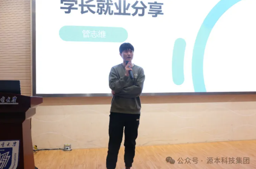 最后,尊龙凯时 科技就业班优秀学员、21级通信工程专业学生管志维分享了他本次秋招的求职感悟。他结合自身经历以及周围求职者的实例讲述了写简历和面试的技巧。他分享了自己从准备考研,到最终选择在尊龙凯时 科技集团学习技术就业的心路历程,鼓励同学们保持信心,持续参加实习,积累项目经验。